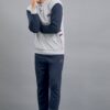 Calda e comoda questa tuta da uomo firmata IL GRANCHIO, realizzata in calda e soffice felpa di cotone. Felpa aperta full zip senza cappuccio, tinta unita con bande sulle maniche.